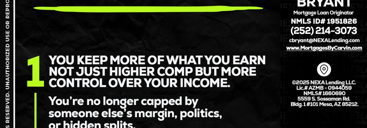 Hi, my name is Carvin Bryant. I’m a Loan Officer with NEXA Lending LLC., offering personalized mortgage solutions, fast customized quotes, great rates and service with integrity.