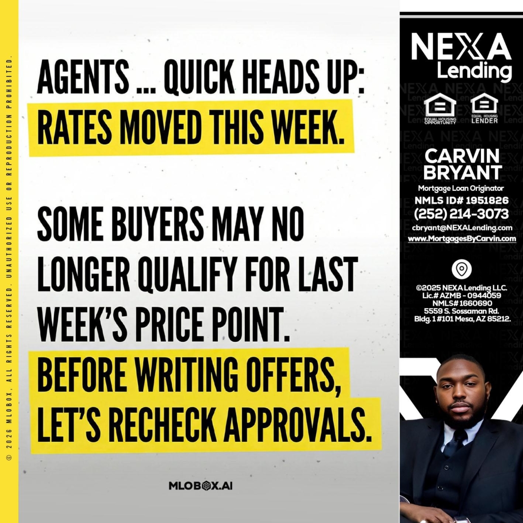 Hi, my name is Carvin Bryant. I’m a Loan Officer with NEXA Lending LLC., offering personalized mortgage solutions, fast customized quotes, great rates and service with integrity.