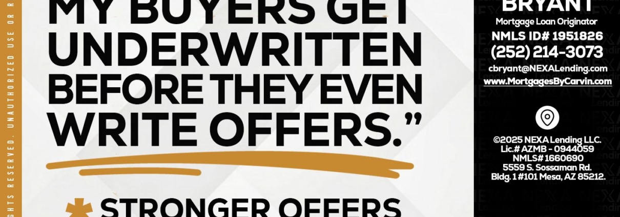 agents - Carvin Bryant -Mortgage Loan OriginatorHi, my name is Carvin Bryant. I’m a Loan Officer with NEXA Lending LLC., offering personalized mortgage solutions, fast customized quotes, great rates and service with integrity.