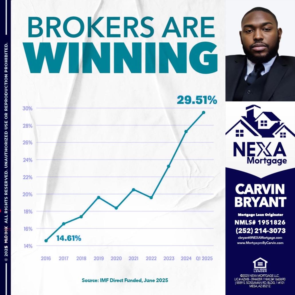 Hi, my name is Carvin Bryant. I’m a Loan Officer with NEXA Mortgage LLC., offering personalized mortgage solutions, fast customized quotes, great rates and service with integrity.