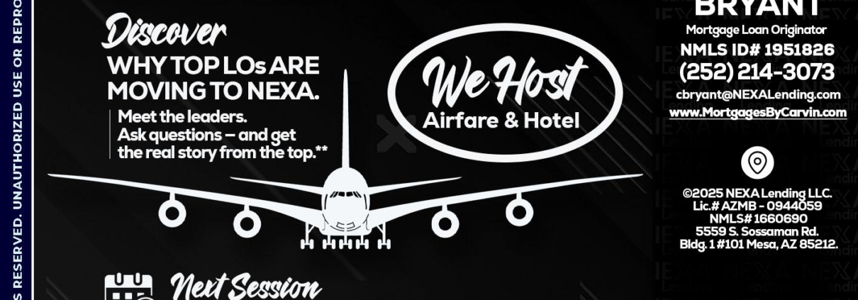 DISCOVER NEXA - Carvin Bryant -Mortgage Loan OriginatorHi, my name is Carvin Bryant. I’m a Loan Officer with NEXA Mortgage LLC., offering personalized mortgage solutions, fast customized quotes, great rates and service with integrity.