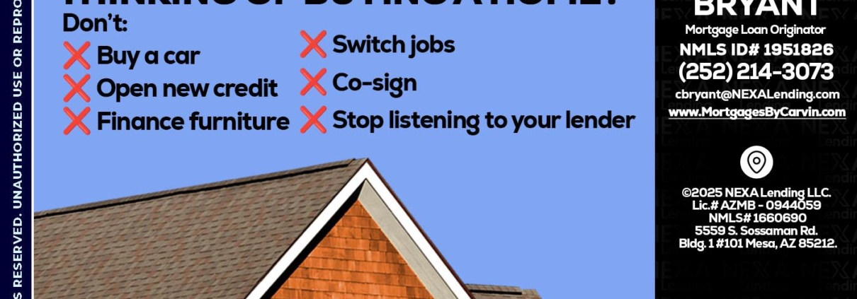 DONT DO THIS - Carvin Bryant -Mortgage Loan OriginatorHi, my name is Carvin Bryant. I’m a Loan Officer with NEXA Mortgage LLC., offering personalized mortgage solutions, fast customized quotes, great rates and service with integrity.
