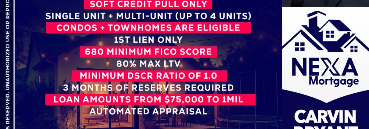 Hi, my name is Carvin Bryant. I’m a Loan Officer with NEXA Mortgage LLC., offering personalized mortgage solutions, fast customized quotes, great rates and service with integrity.