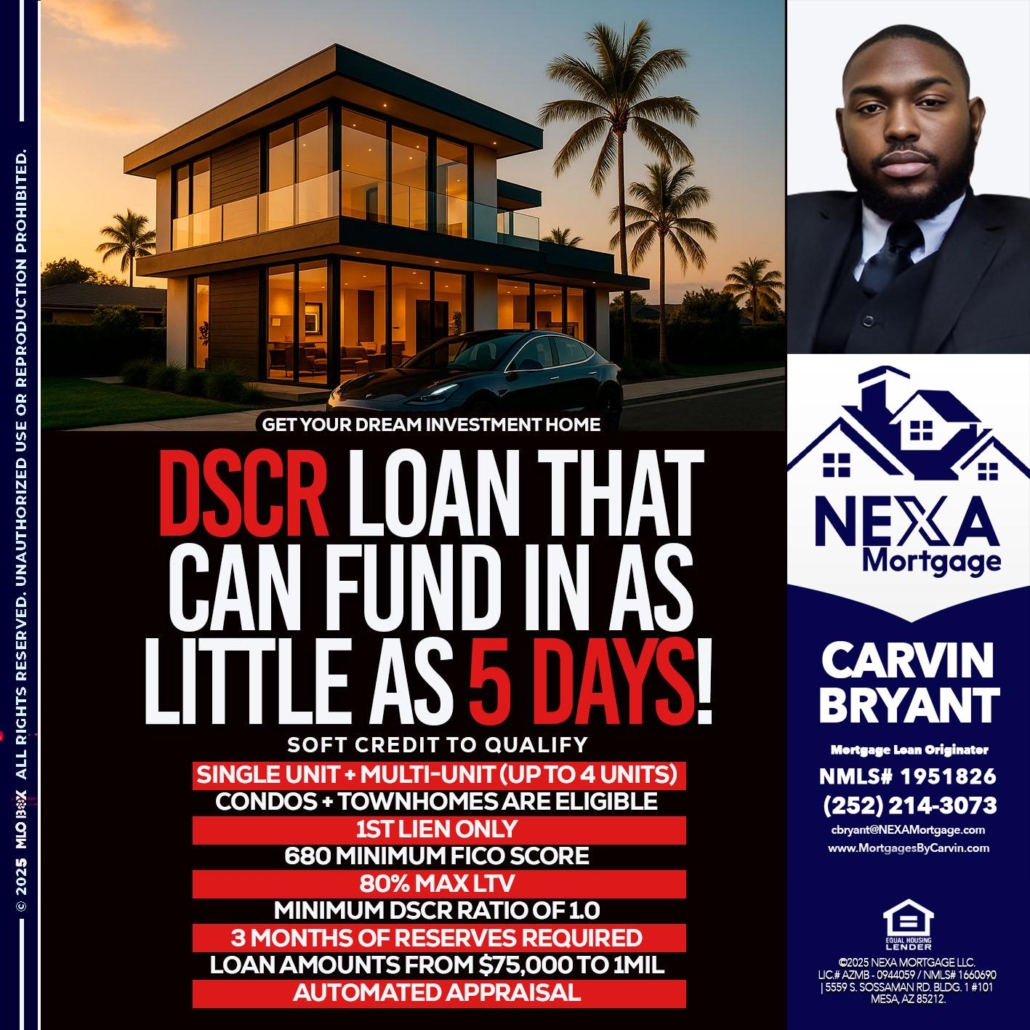 Hi, my name is Carvin Bryant. I’m a Loan Officer with NEXA Mortgage LLC., offering personalized mortgage solutions, fast customized quotes, great rates and service with integrity.