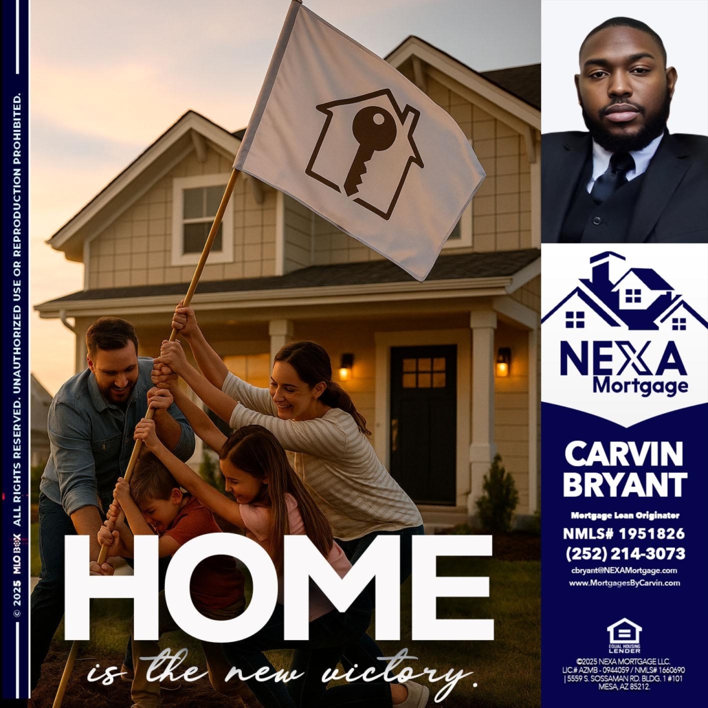 Hi, my name is Carvin Bryant. I’m a Loan Officer with NEXA Mortgage LLC., offering personalized mortgage solutions, fast customized quotes, great rates and service with integrity.