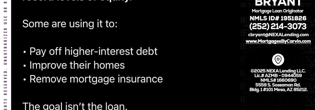 Hi, my name is Carvin Bryant. I’m a Loan Officer with NEXA Lending LLC., offering personalized mortgage solutions, fast customized quotes, great rates and service with integrity.