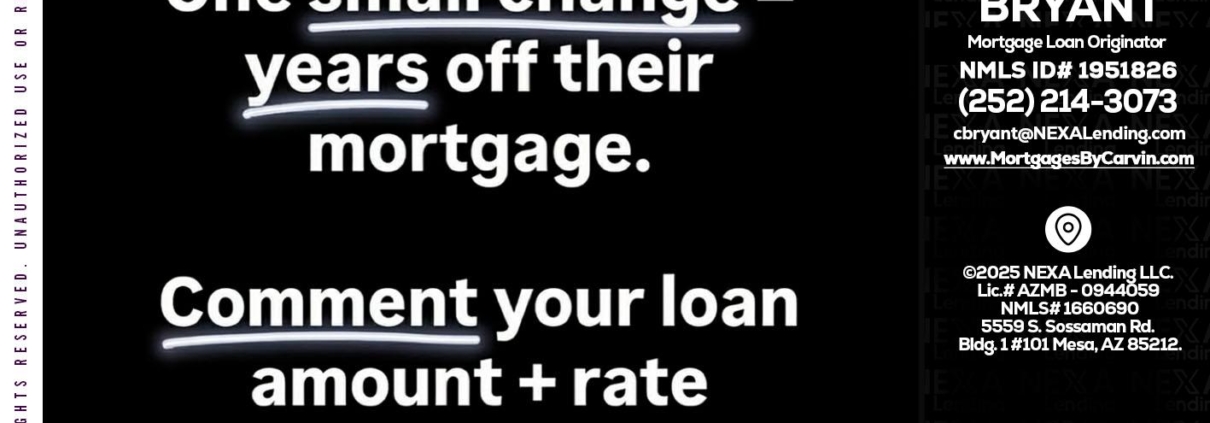 Hi, my name is Carvin Bryant. I’m a Loan Officer with NEXA Lending LLC., offering personalized mortgage solutions, fast customized quotes, great rates and service with integrity.