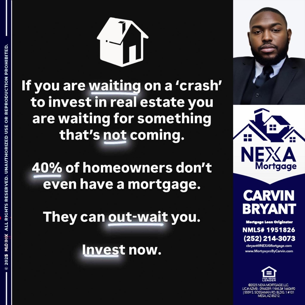 Hi, my name is Carvin Bryant. I’m a Loan Officer with NEXA Mortgage LLC., offering personalized mortgage solutions, fast customized quotes, great rates and service with integrity.