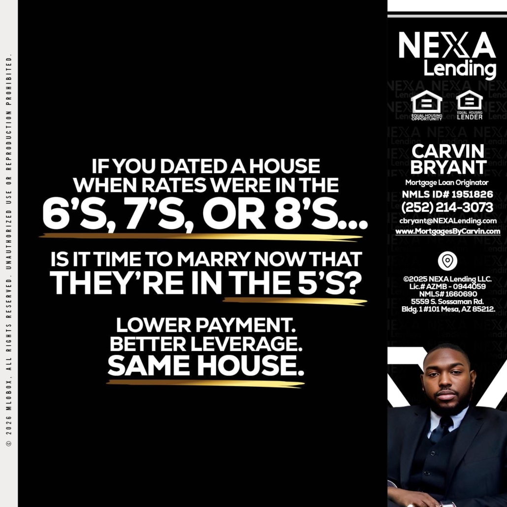 Hi, my name is Carvin Bryant. I’m a Loan Officer with NEXA Lending LLC., offering personalized mortgage solutions, fast customized quotes, great rates and service with integrity.