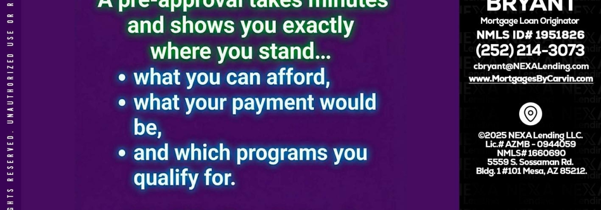 Hi, my name is Carvin Bryant. I’m a Loan Officer with NEXA Lending LLC., offering personalized mortgage solutions, fast customized quotes, great rates and service with integrity.