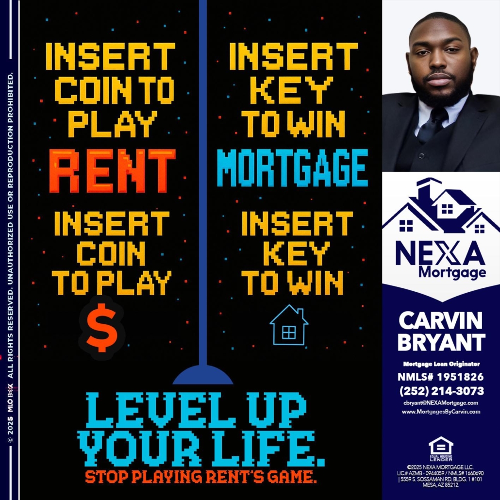 Hi, my name is Carvin Bryant. I’m a Loan Officer with NEXA Mortgage LLC., offering personalized mortgage solutions, fast customized quotes, great rates and service with integrity.