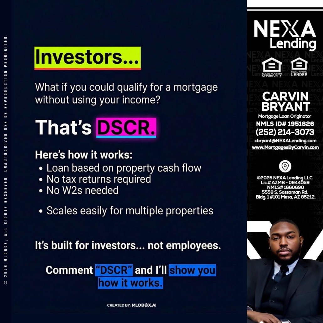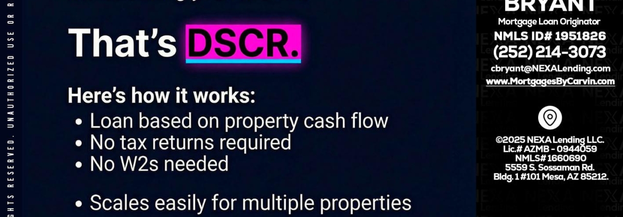 Hi, my name is Carvin Bryant. I’m a Loan Officer with NEXA Lending LLC., offering personalized mortgage solutions, fast customized quotes, great rates and service with integrity.