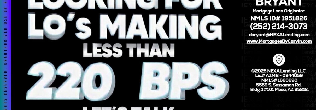 Hi, my name is Carvin Bryant. I’m a Loan Officer with NEXA Lending LLC., offering personalized mortgage solutions, fast customized quotes, great rates and service with integrity.