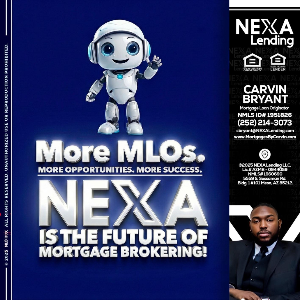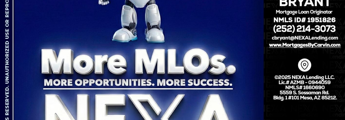 Hi, my name is Carvin Bryant. I’m a Loan Officer with NEXA Lending LLC., offering personalized mortgage solutions, fast customized quotes, great rates and service with integrity.