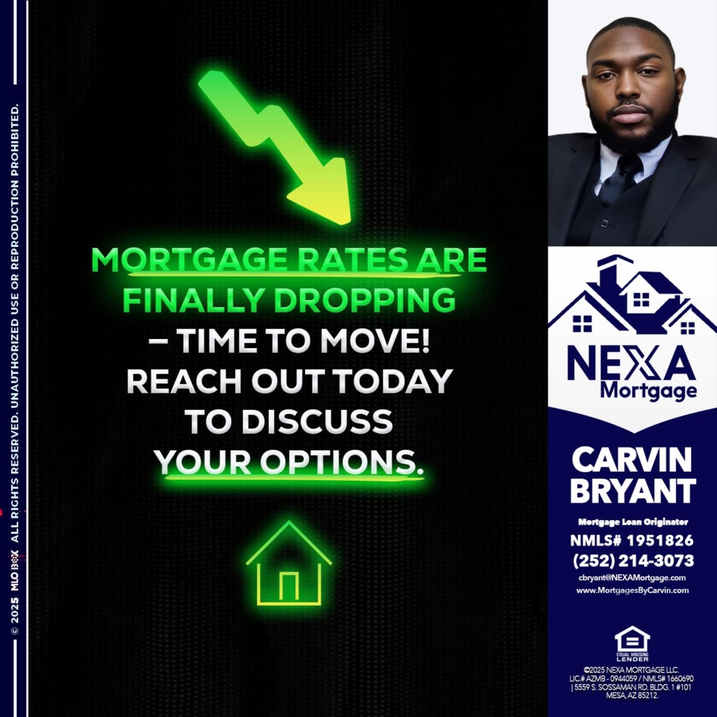 Hi, my name is Carvin Bryant. I’m a Loan Officer with NEXA Mortgage LLC., offering personalized mortgage solutions, fast customized quotes, great rates and service with integrity.
