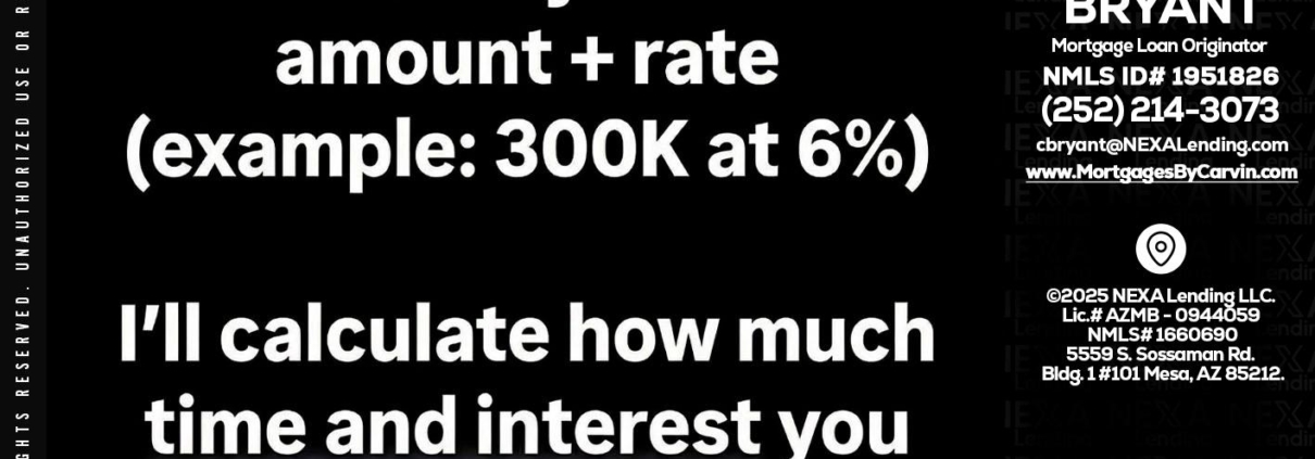 Hi, my name is Carvin Bryant. I’m a Loan Officer with NEXA Lending LLC., offering personalized mortgage solutions, fast customized quotes, great rates and service with integrity.