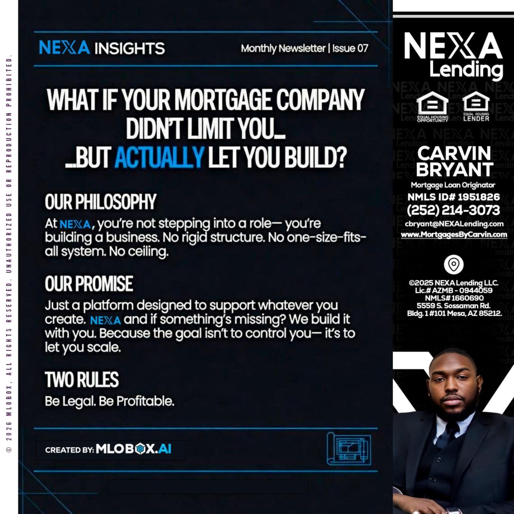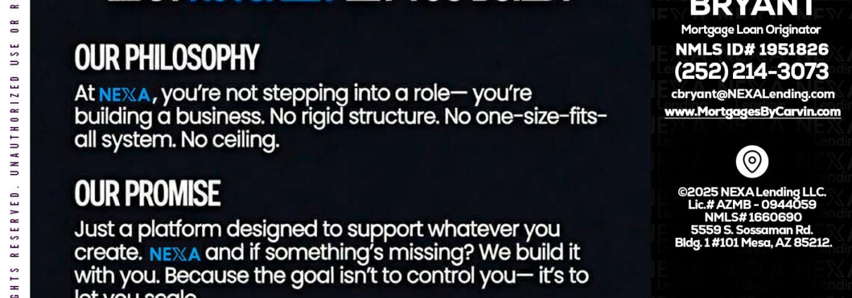 Hi, my name is Carvin Bryant. I’m a Loan Officer with NEXA Lending LLC., offering personalized mortgage solutions, fast customized quotes, great rates and service with integrity.