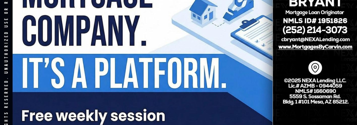 Hi, my name is Carvin Bryant. I’m a Loan Officer with NEXA Lending LLC., offering personalized mortgage solutions, fast customized quotes, great rates and service with integrity.