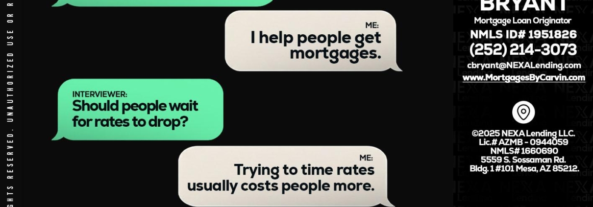 rapid fire - Carvin Bryant -Mortgage Loan OriginatorHi, my name is Carvin Bryant. I’m a Loan Officer with NEXA Lending LLC., offering personalized mortgage solutions, fast customized quotes, great rates and service with integrity.