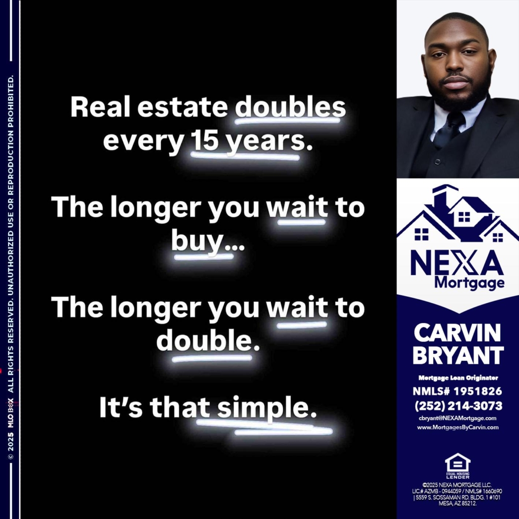 Hi, my name is Carvin Bryant. I’m a Loan Officer with NEXA Mortgage LLC., offering personalized mortgage solutions, fast customized quotes, great rates and service with integrity.