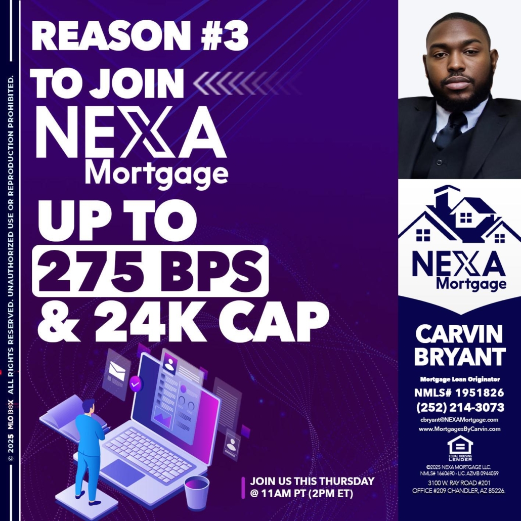 Hi, my name is Carvin Bryant. I’m a Loan Officer with NEXA Mortgage LLC., offering personalized mortgage solutions, fast customized quotes, great rates and service with integrity.