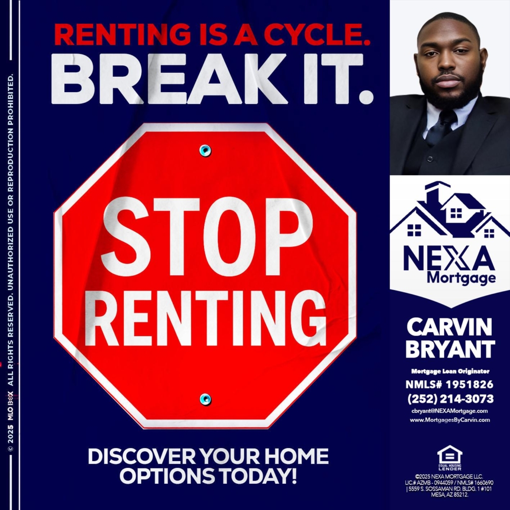 Hi, my name is Carvin Bryant. I’m a Loan Officer with NEXA Mortgage LLC., offering personalized mortgage solutions, fast customized quotes, great rates and service with integrity.