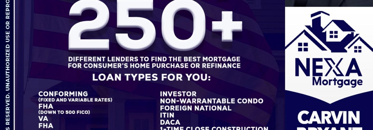 Hi, my name is Carvin Bryant. I’m a Loan Officer with NEXA Mortgage LLC., offering personalized mortgage solutions, fast customized quotes, great rates and service with integrity.