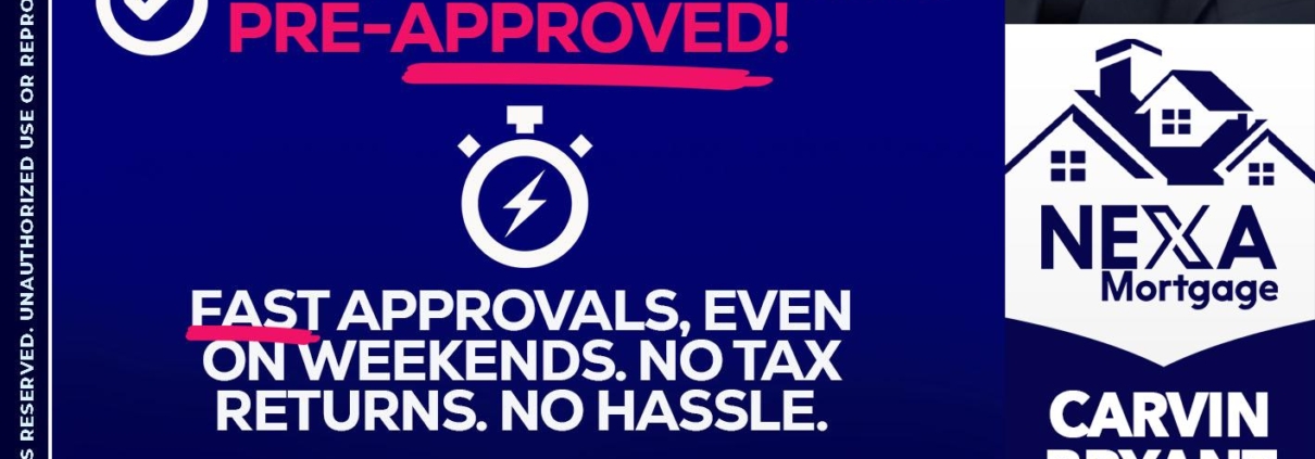 Hi, my name is Carvin Bryant. I’m a Loan Officer with NEXA Mortgage LLC., offering personalized mortgage solutions, fast customized quotes, great rates and service with integrity.