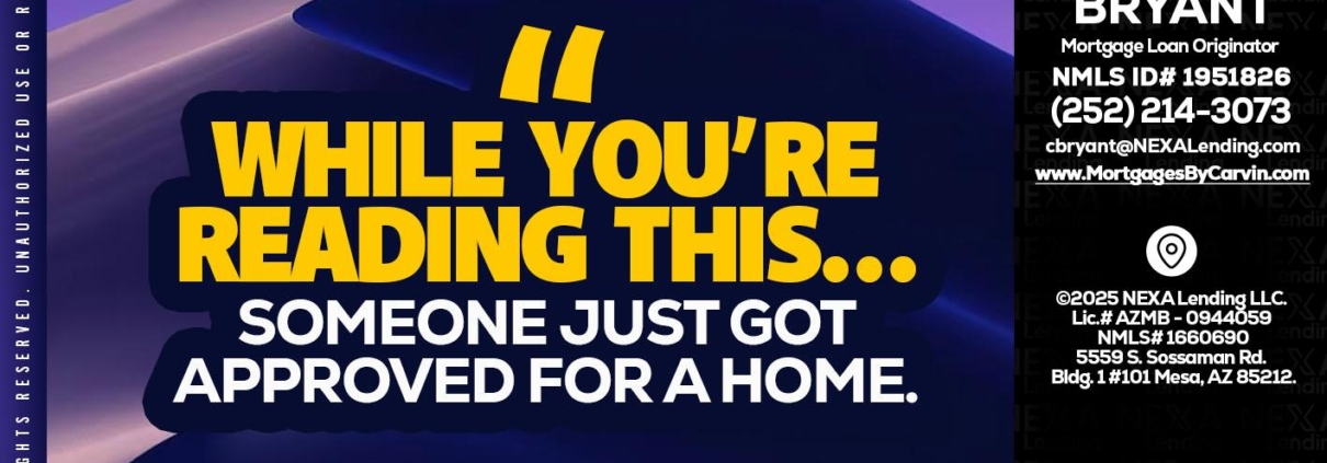 Hi, my name is Carvin Bryant. I’m a Loan Officer with NEXA Lending LLC., offering personalized mortgage solutions, fast customized quotes, great rates and service with integrity.