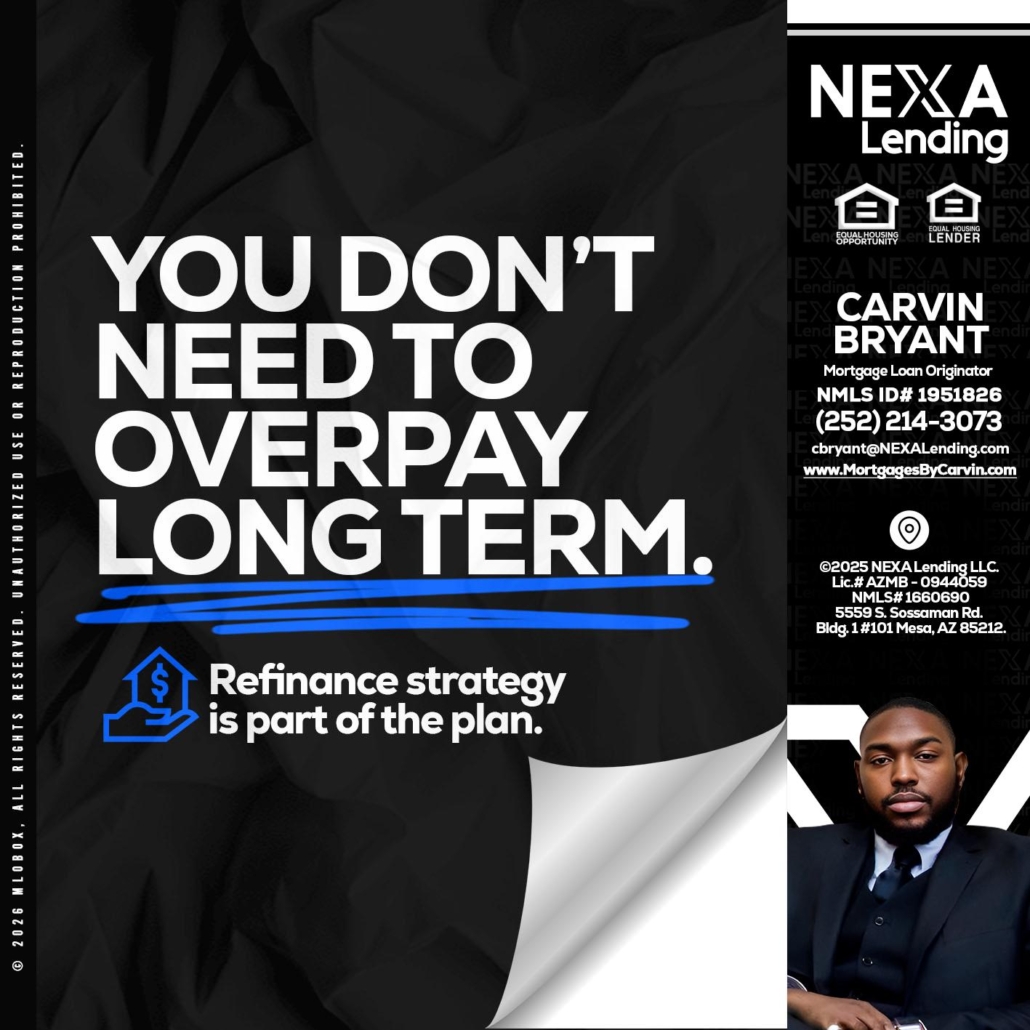 Hi, my name is Carvin Bryant. I’m a Loan Officer with NEXA Lending LLC., offering personalized mortgage solutions, fast customized quotes, great rates and service with integrity.
