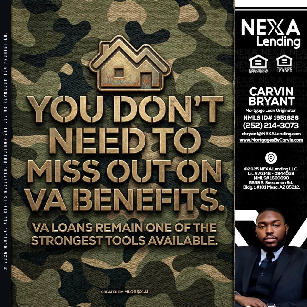 Hi, my name is Carvin Bryant. I’m a Loan Officer with NEXA Lending LLC., offering personalized mortgage solutions, fast customized quotes, great rates and service with integrity.