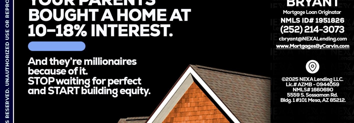 Hi, my name is Carvin Bryant. I’m a Loan Officer with NEXA Mortgage LLC., offering personalized mortgage solutions, fast customized quotes, great rates and service with integrity.